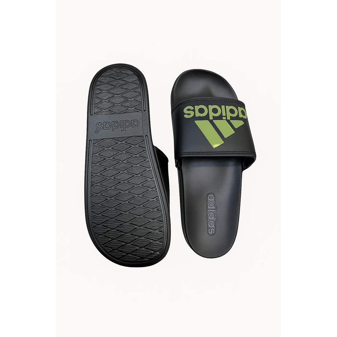 ADIDAS BLACK GREEN PRINTED LOGO SLIDE