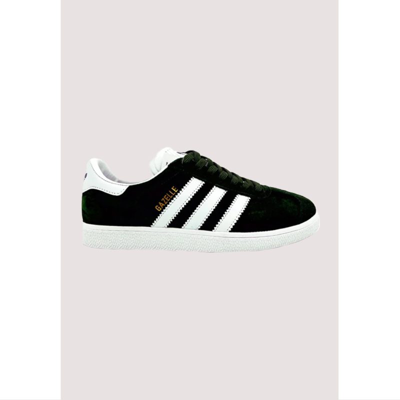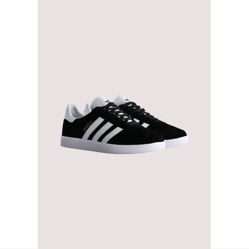 - The Adidas Gazelle Indoor Core Black & White brings vintage 1970s style into today’s streetwear scene. Featuring a premium black suede upper, crisp white 3-Stripes, a gold “Gazelle” logo, and a retro gum sole, these sneakers deliver a timeless look with everyday comfort