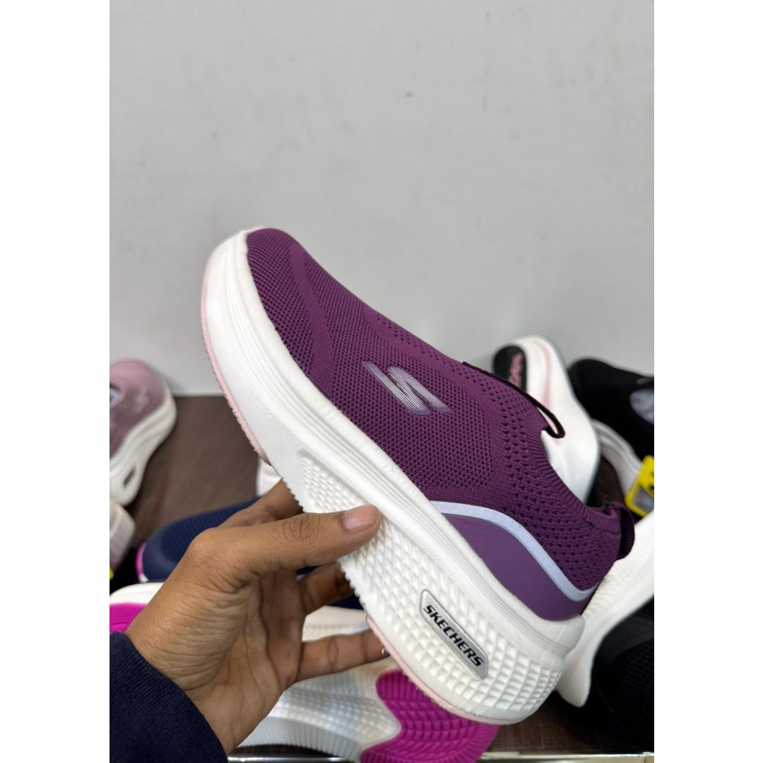 SKECHERS MAROON-WHITE SLIP ON WOMEN SHOES